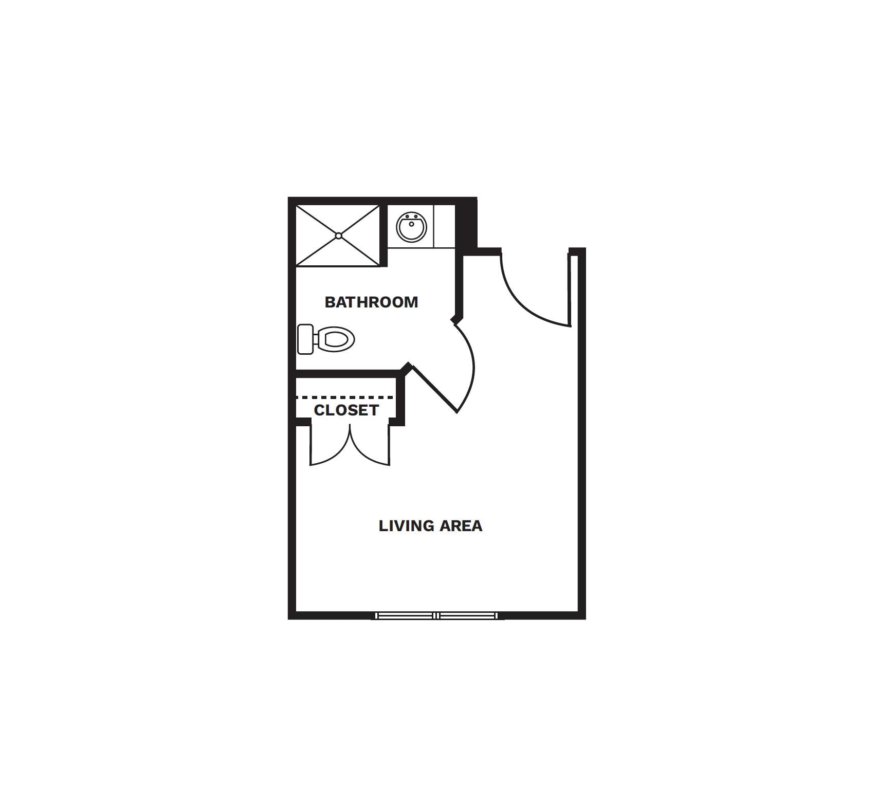 Choice of a variety of studio and companion suite apartment styles featuring bathrooms with safety features